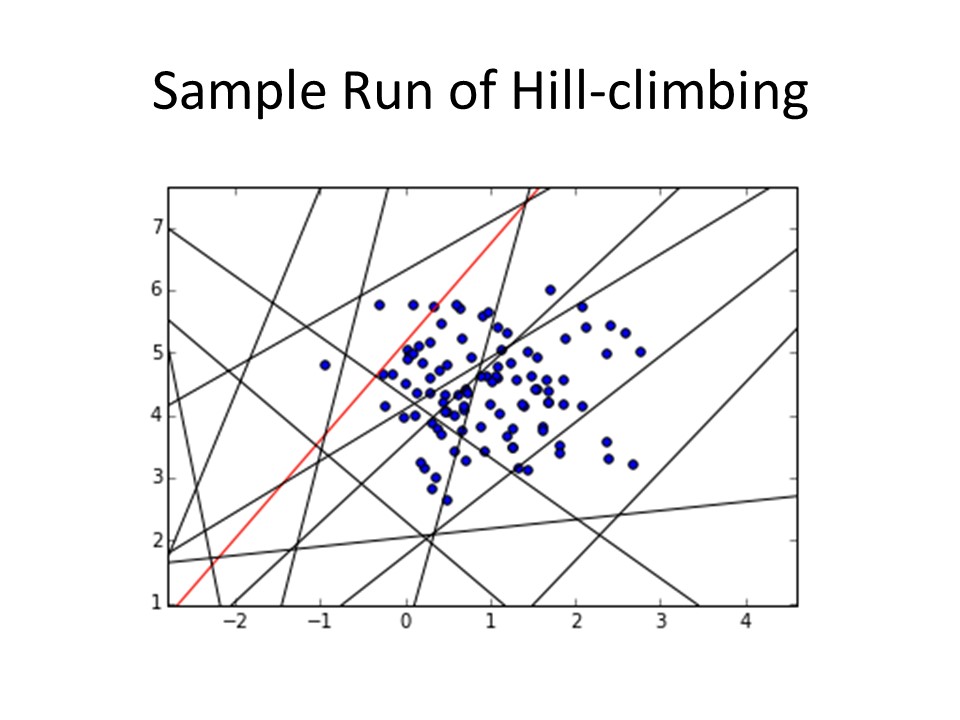 Twelve new canidates were randomly generated and the process starts again. However, even those the previous candidate is show (here in red), it won't be mutated or chosen for crossover. It isn't part of the new set of twelve candidates. Instead, it will be saves as a terminal leaf in the syntax tree and will be used for calculating the new fitness fuctions. That is, the next "best" candidate will fit the remaining data that the red winning candidate doesn't encapsulate.